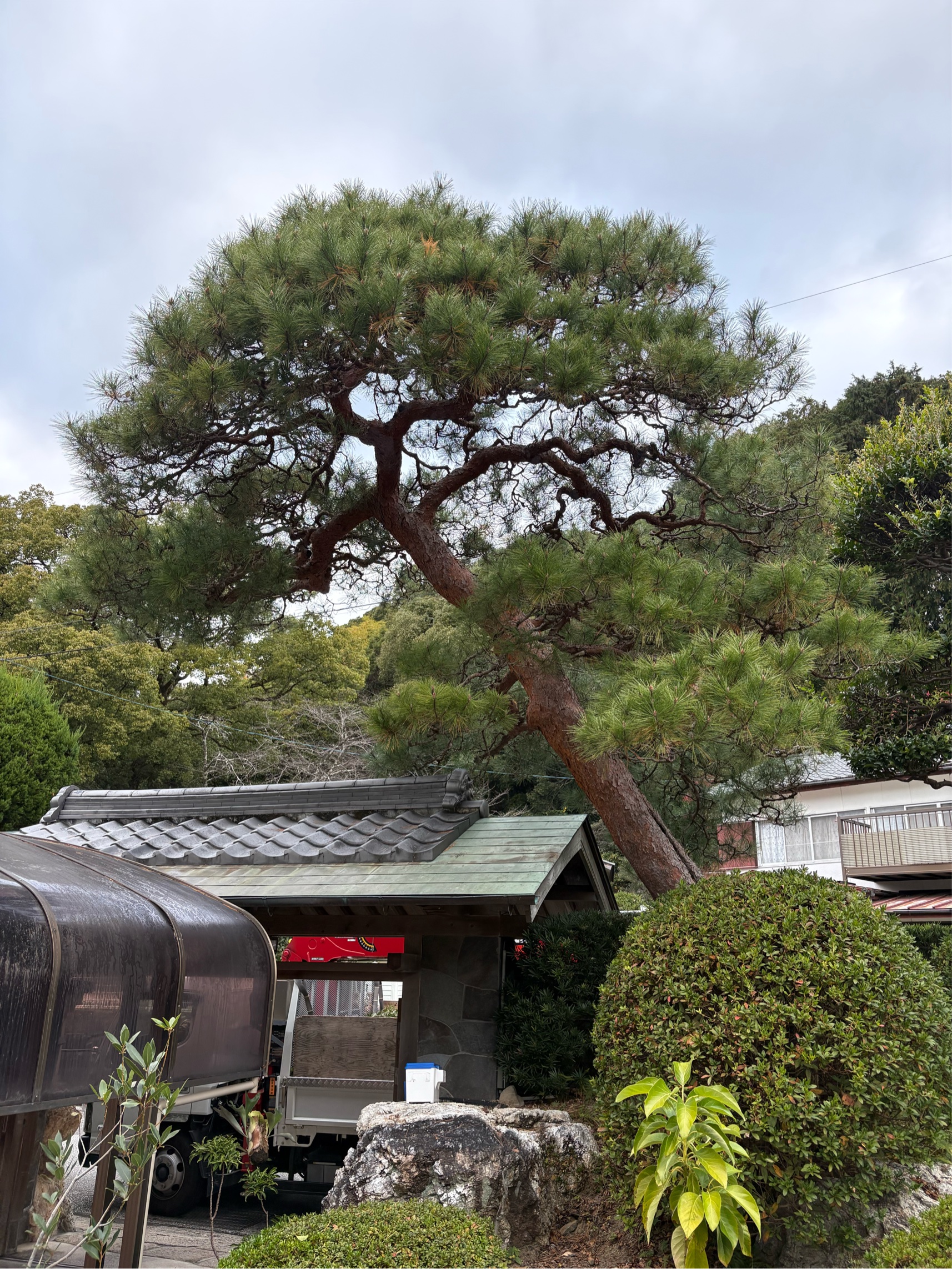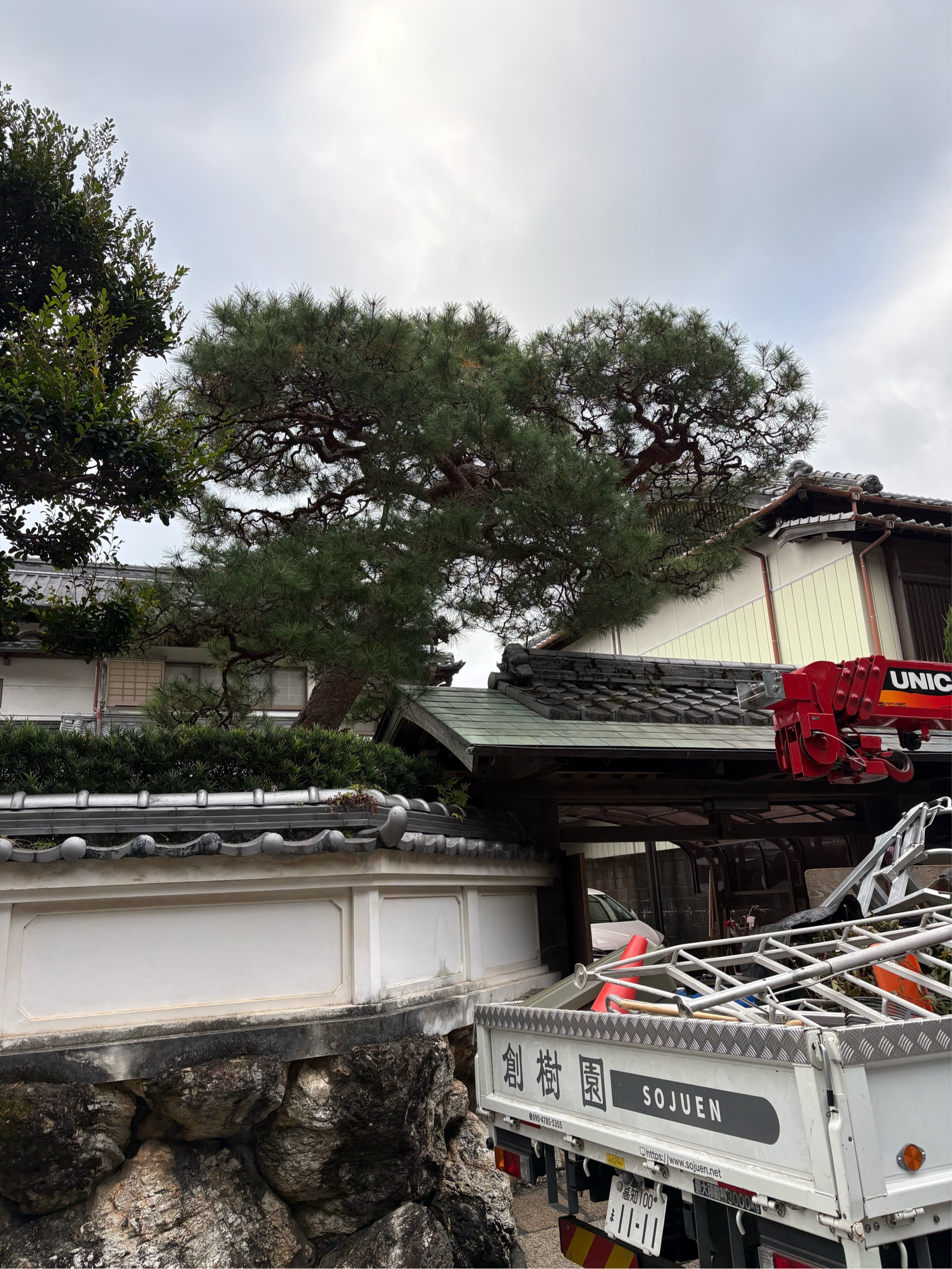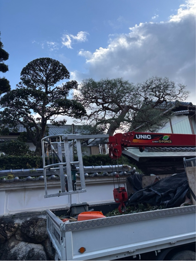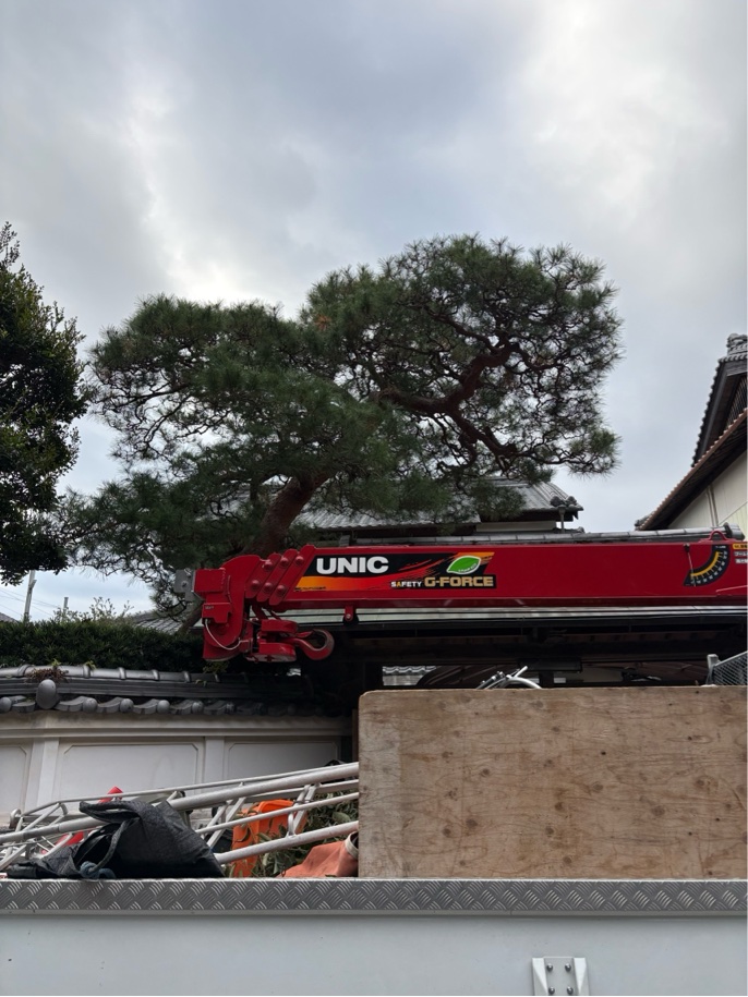 高知市にて、門被りのアカマツの剪定作業をさせていただきました。