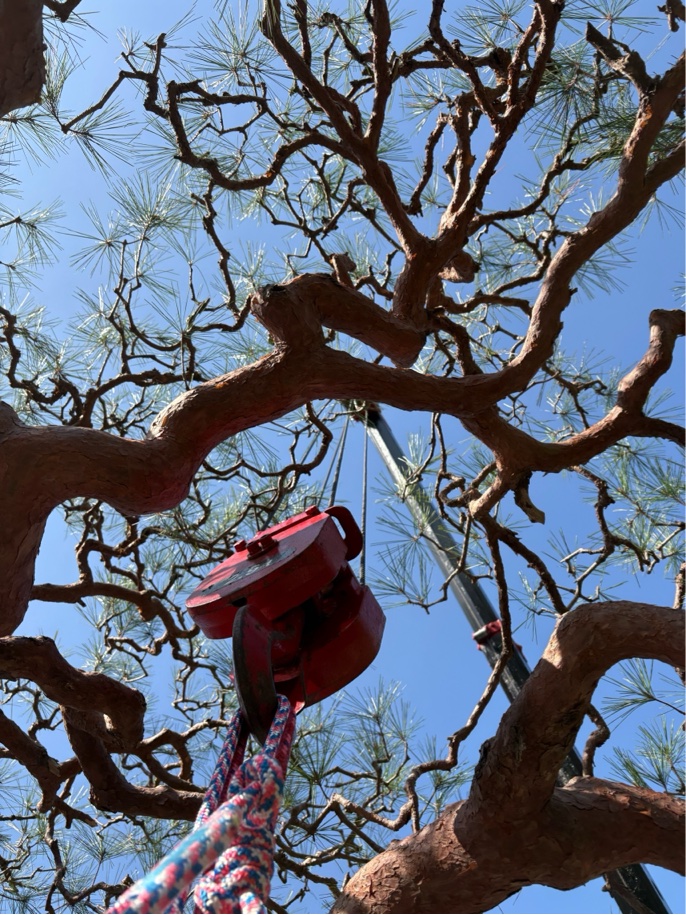 門被り松の剪定では、下から見上げたときの美しさが非常に重要です。