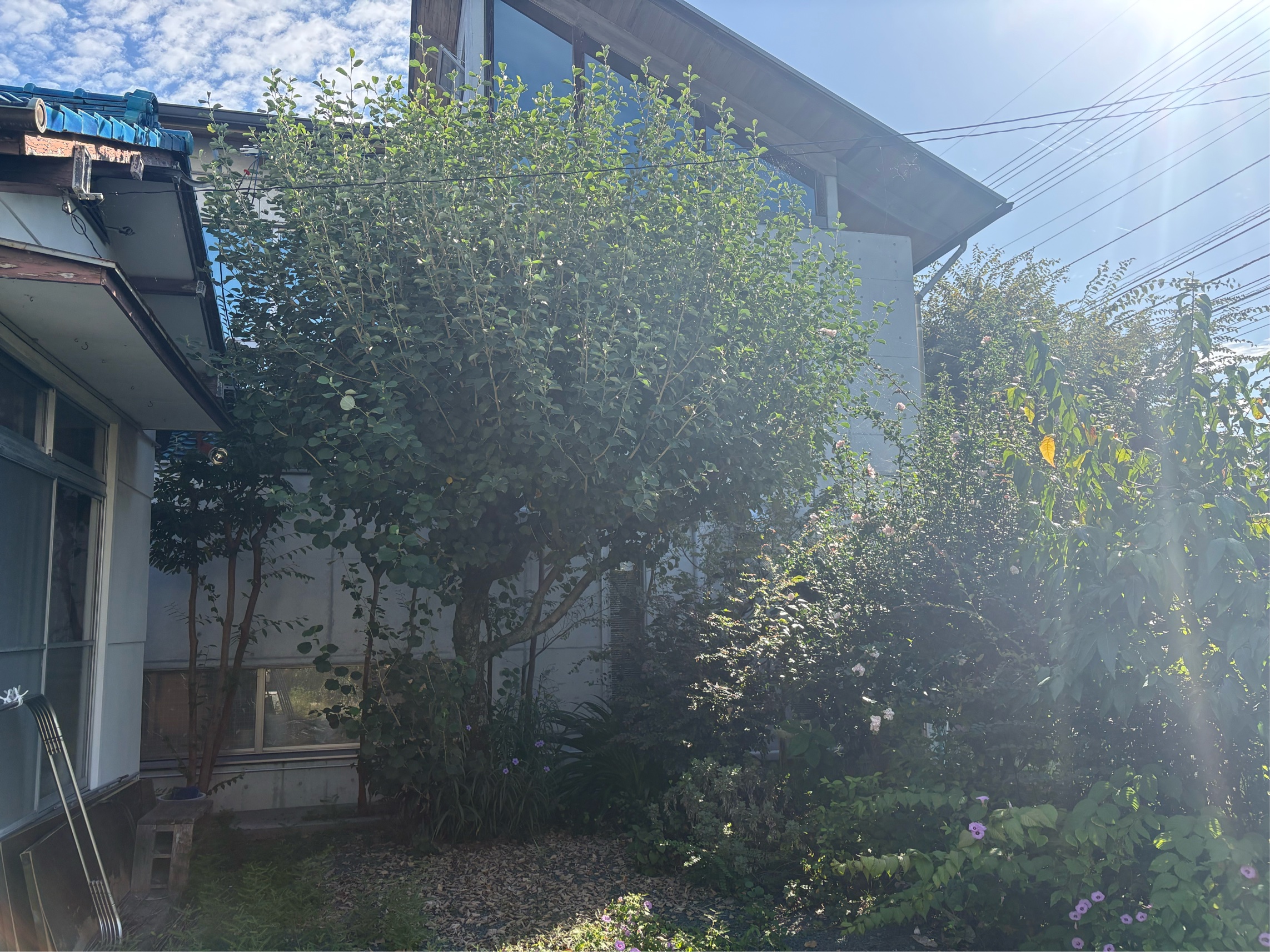 ハマボウ:本来は夏に黄色い花を咲かせる樹木ですが、今回は全体をリセットする目的で思い切った強剪定を実施。古い枝を落とし、新しい芽吹きにつながるよう仕上げました。