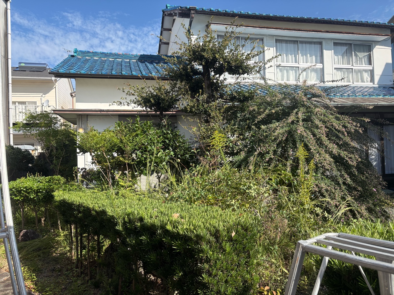 枝葉が伸び放題で庭全体にボリュームが出すぎ、日当たりや風通しが悪くなる一因となっていました。特にキンモクセイやツゲは枝が密になりやすく、定期的なお手入れをしないと圧迫感が出やすい状態でした。
