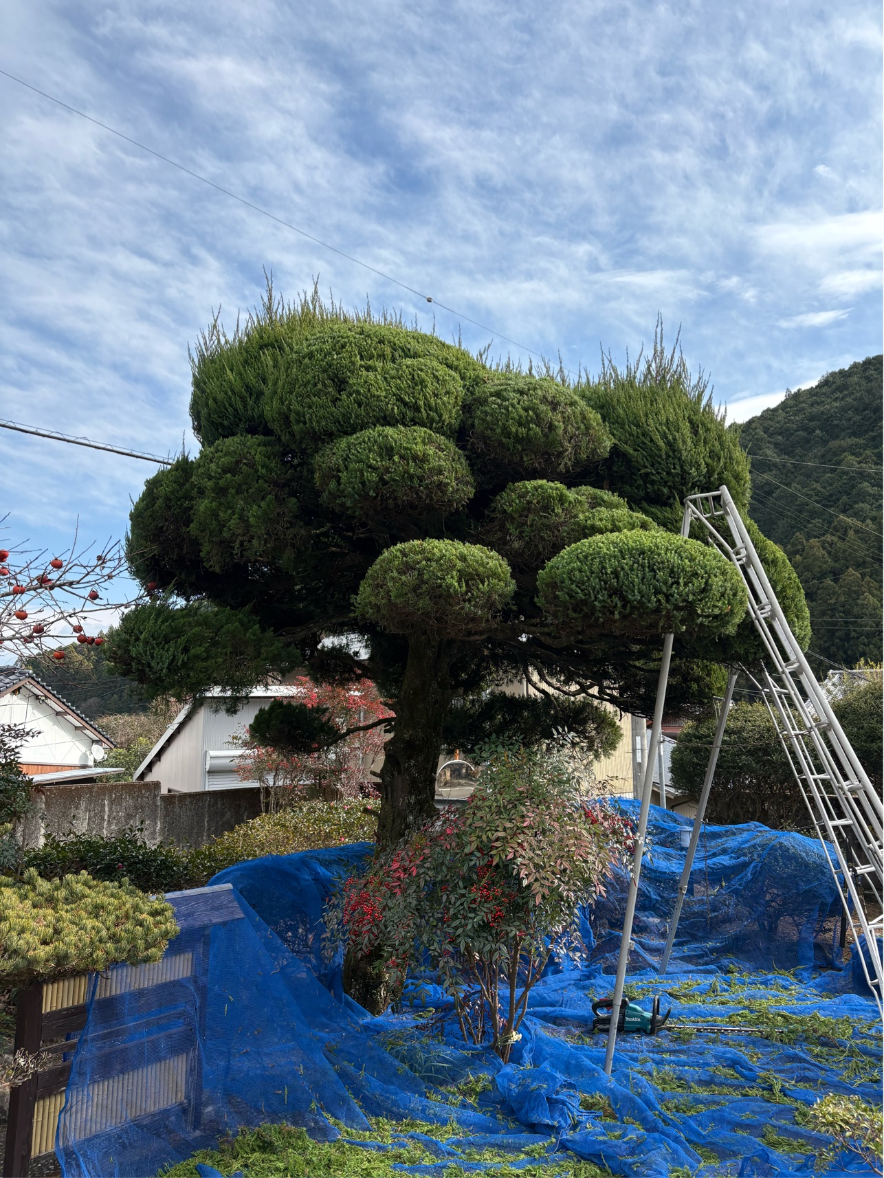 佐川町にて、新規のお客様よりご依頼をいただき、カイヅカイブキの棚物剪定作業をさせていただきました。