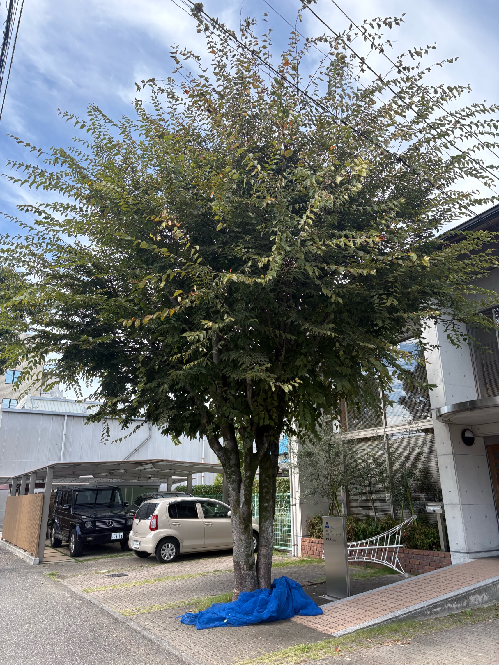 高知市にて、事務所前にある 大きなケヤキの剪定作業 を行いました。