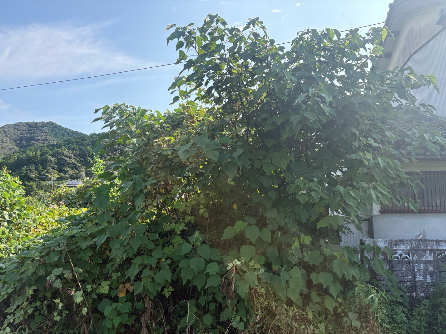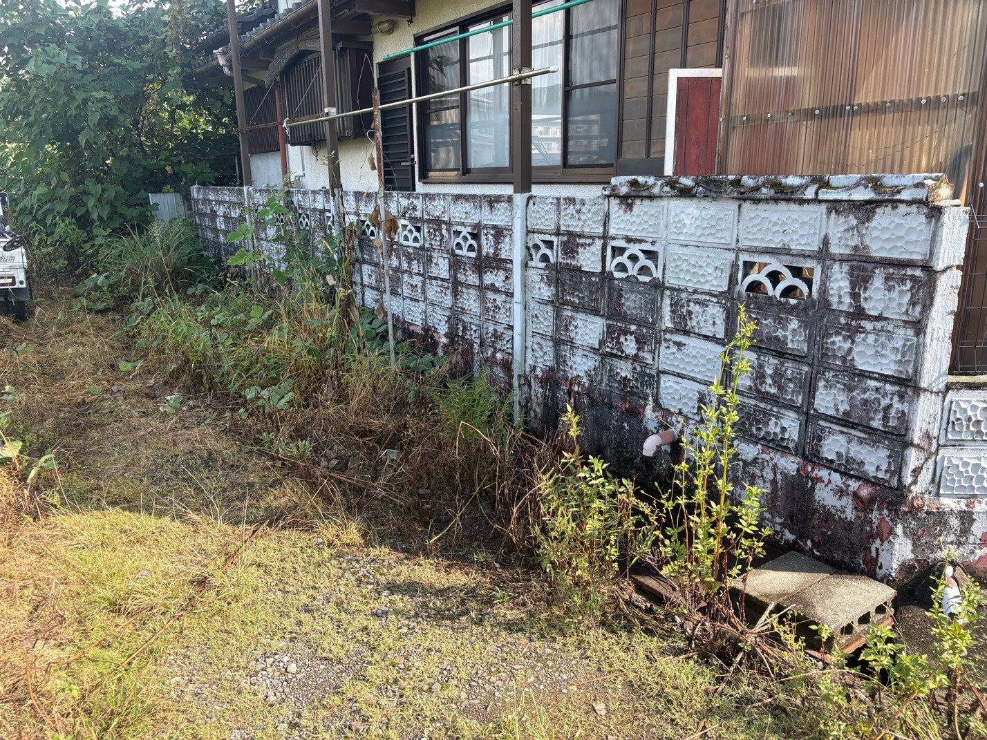 今回ご依頼いただいた現場は、数年にわたり管理ができていない状態が続いており、雑草が背丈以上に伸び、庭木や雑木も成長して隣地へ越境している状況でした。