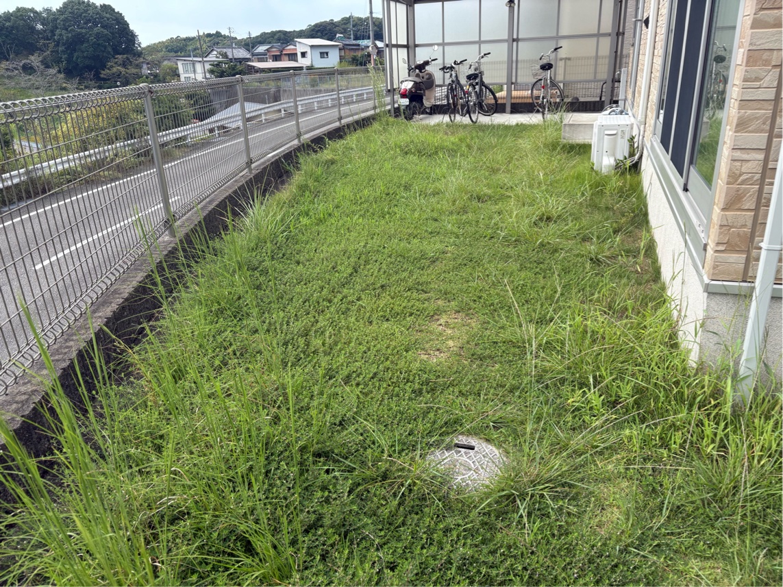 今回は、できるだけ地際で丁寧に刈り込み、雑草の再生を抑えることにも配慮しました。草丈が揃うことで見た目が美しくなるだけでなく、害虫やゴミのポイ捨て防止にもつながります。